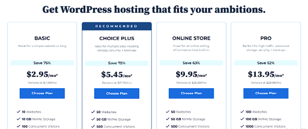 Bluehost WordPress Hosting Plans